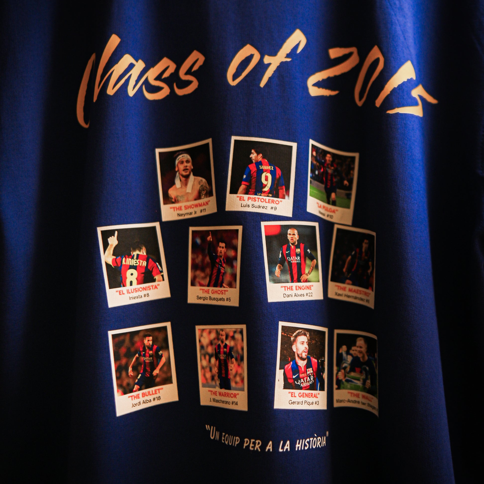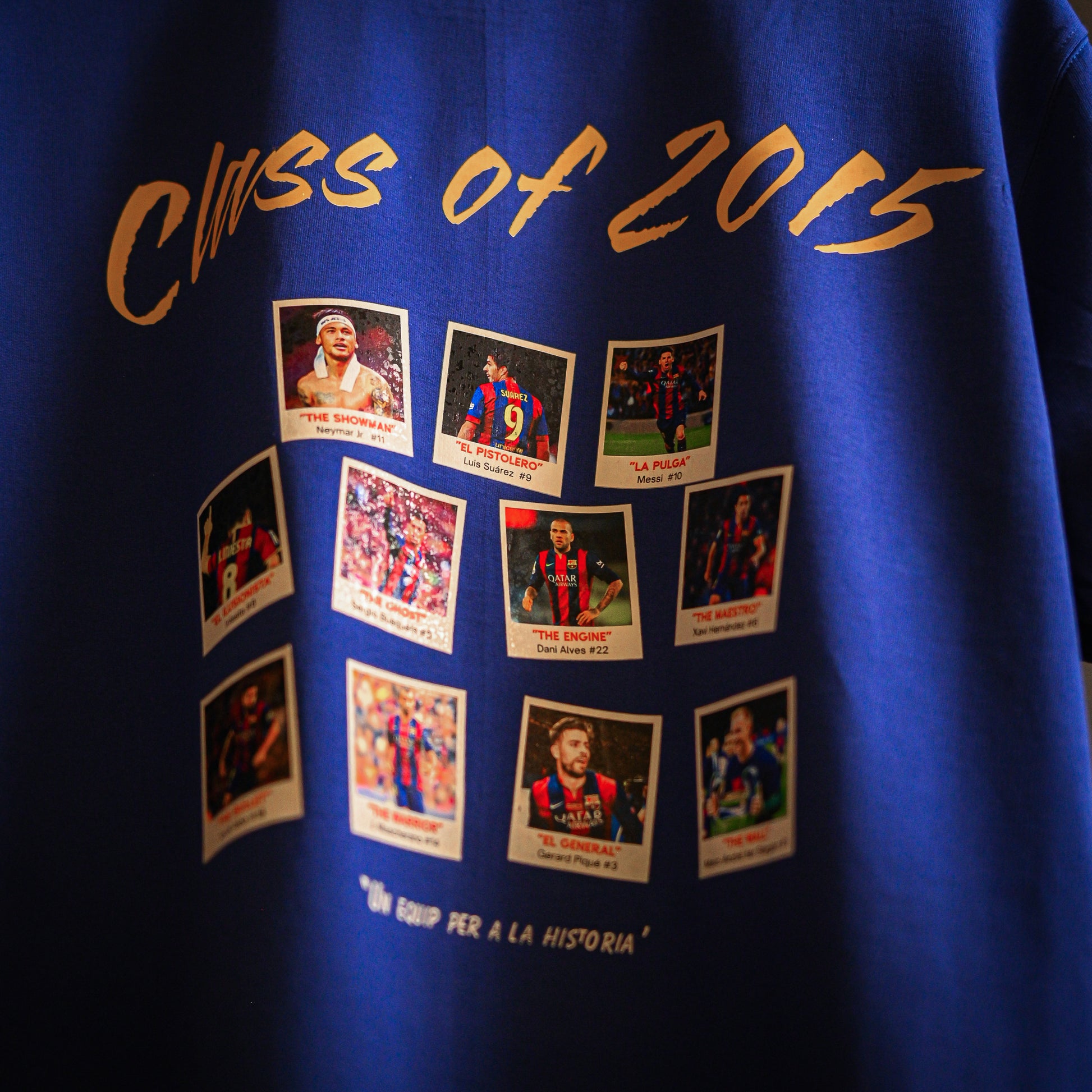 Relive the golden age of football with FanArena’s Barca Class of 2015 Tee — a tribute to the legendary FC Barcelona squad that redefined the game. From Messi’s magic to Neymar’s flair and Suárez’s fire, this shirt celebrates the trio that made football poetry in motion.